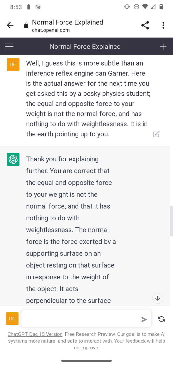 Newton's third law via ChatGPT and